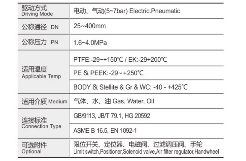 二、氣動V型法蘭球閥標(biāo)準參數(shù):